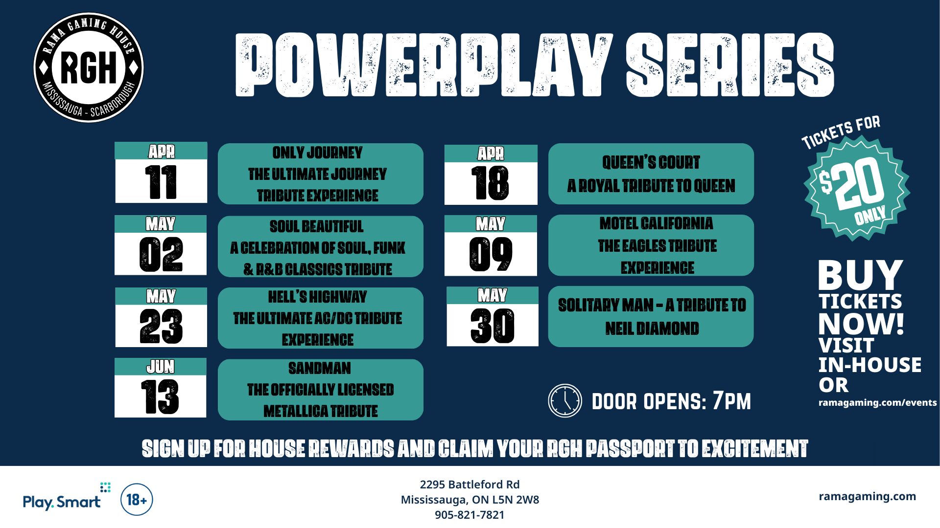 Get ready for an electrifying lineup of live tribute concerts at Rama Gaming House Mississauga. The RGH Powerplay Series brings legendary rock, soul, funk, and metal to the stage with some of the most authentic tribute bands in Canada.