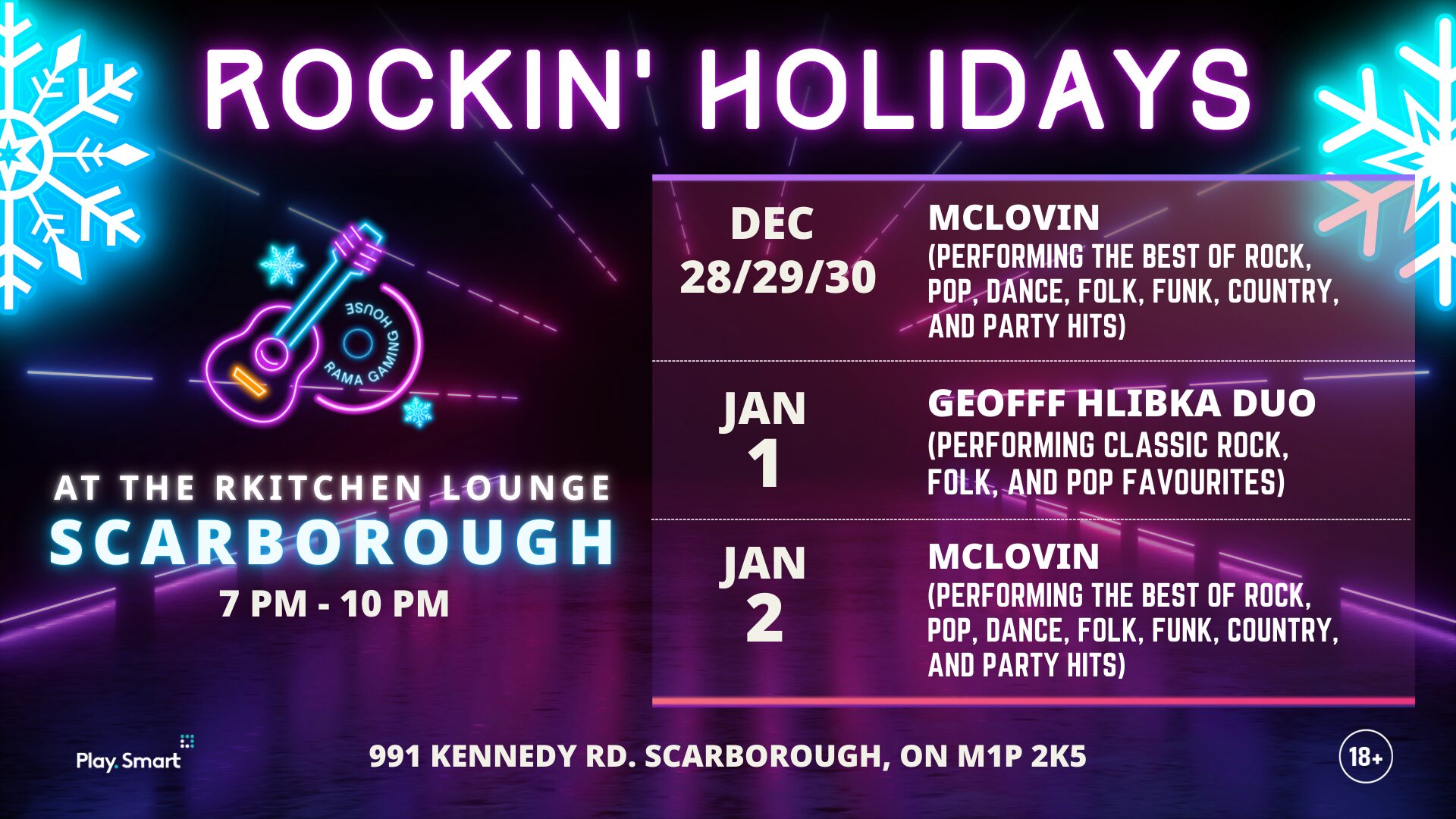 Come out, enjoy the music, soak in the festive energy, and create memorable nights this holiday season at Rama Gaming House Scarborough. This event is 18+ only.
